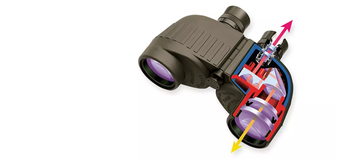 Встроенные компасы, наложенные на линзу, позволяют пользователю отслеживать курс объекта, который не был бы виден в обычный бинокль. Бинокль со встроенным компасом может оказаться очень полезным при навигации на борту судна. Если перед вами стоит выбор: бинокль с компасом или бинокль без компаса, то мы рекомендуют всегда приобретать версию с компасом, если бинокль предполагается использовать в активной среде.