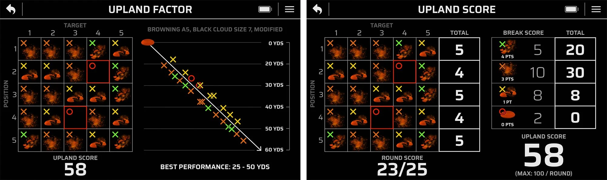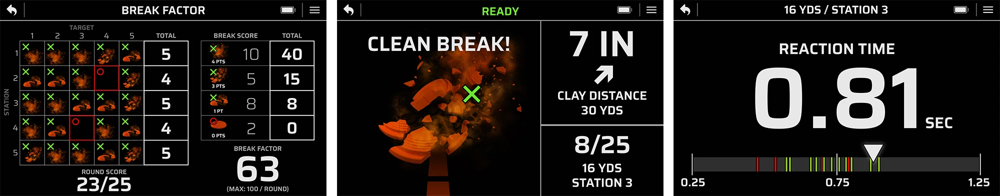 - Поддерживает American Trap Singles и Handicap, а также режим Upland Mode, позволяющий как охотникам с трапами, так и охотникам с высокогорной охотой любого уровня подготовки получить ценную информацию о своих сильных и слабых сторонах.